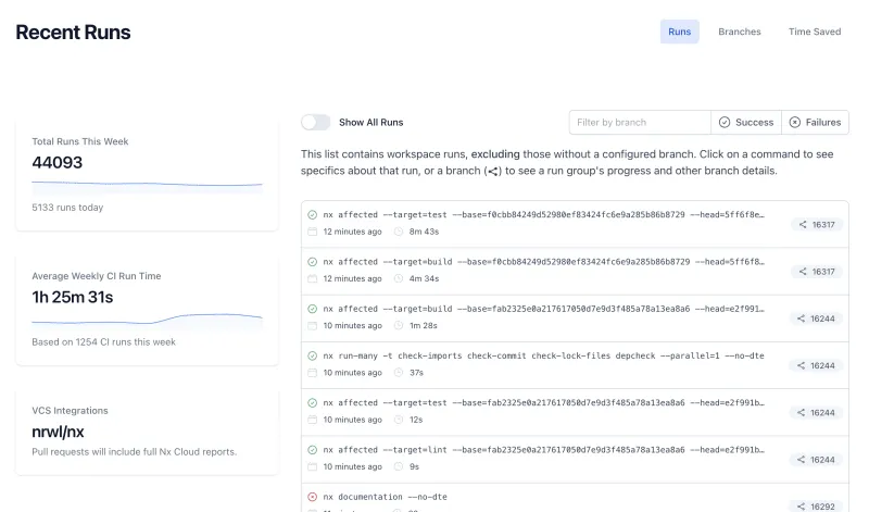 The Nx Cloud application — showing your runs, cache saved, and stats — also got a significant overhaul, making the UI more lightweight and easier to parse.